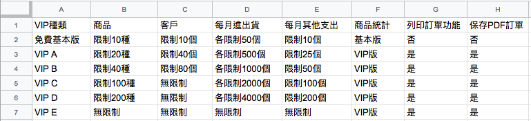 VIP A,B,C,D,E及基本版的限制為何?